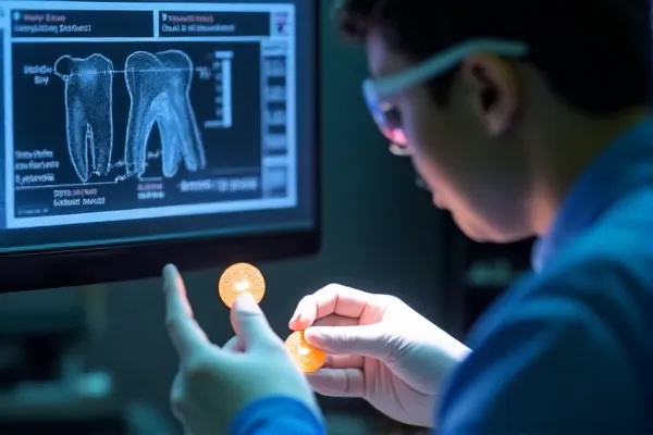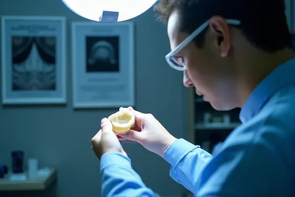Image ALT: Trusted-Zirconia-Lab-Assessment Prompt: close-up of dental technician reviewing high-translucent zirconia crown under daylight lamp, crown case photos, technician certificate frames in background, clinical lighting, modern lab setting