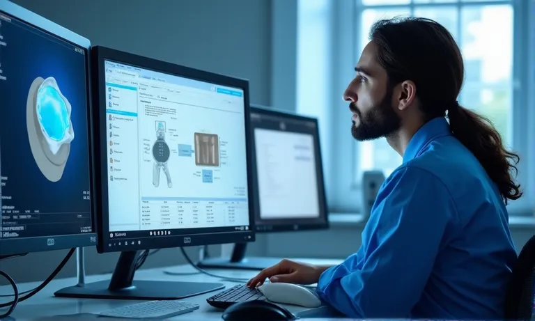 Image ALT: Dental-Lab-CAD-Margin-Design-and-Prep-Accuracy Prompt: A highly realistic, ultra-detailed, professional-quality image showing dental CAD software (e.g., Exocad, 3Shape) with a zoomed-in margin line view, prep surface, and thickness gauge overlay. Display parameter settings and interface panels for margin clarity and occlusal thickness. Natural lighting with clean digital screens in a lab context.